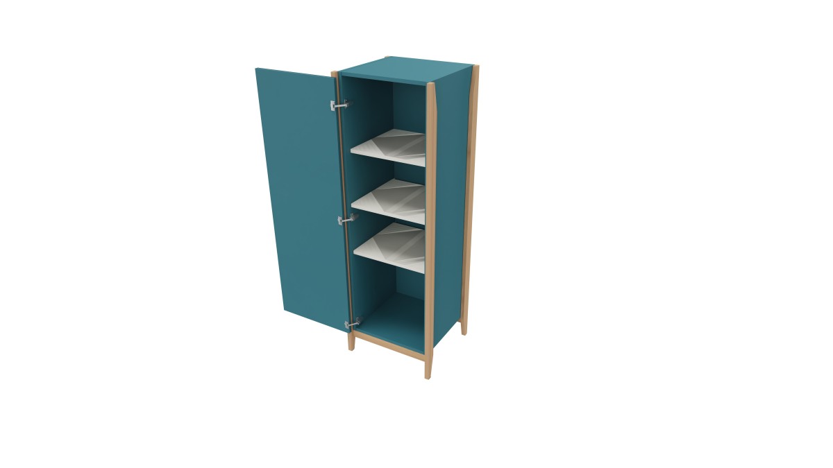 Structure réalisée en hêtre massif. Les arêtes du produit sont cassées par un arrondi. Remplissage en panneau mélaminé d'épaisseur 19 mm. . L’intérieur est en panneau mélaminé avec chant en plastique de 2 mm. 1 grille de ventilation.