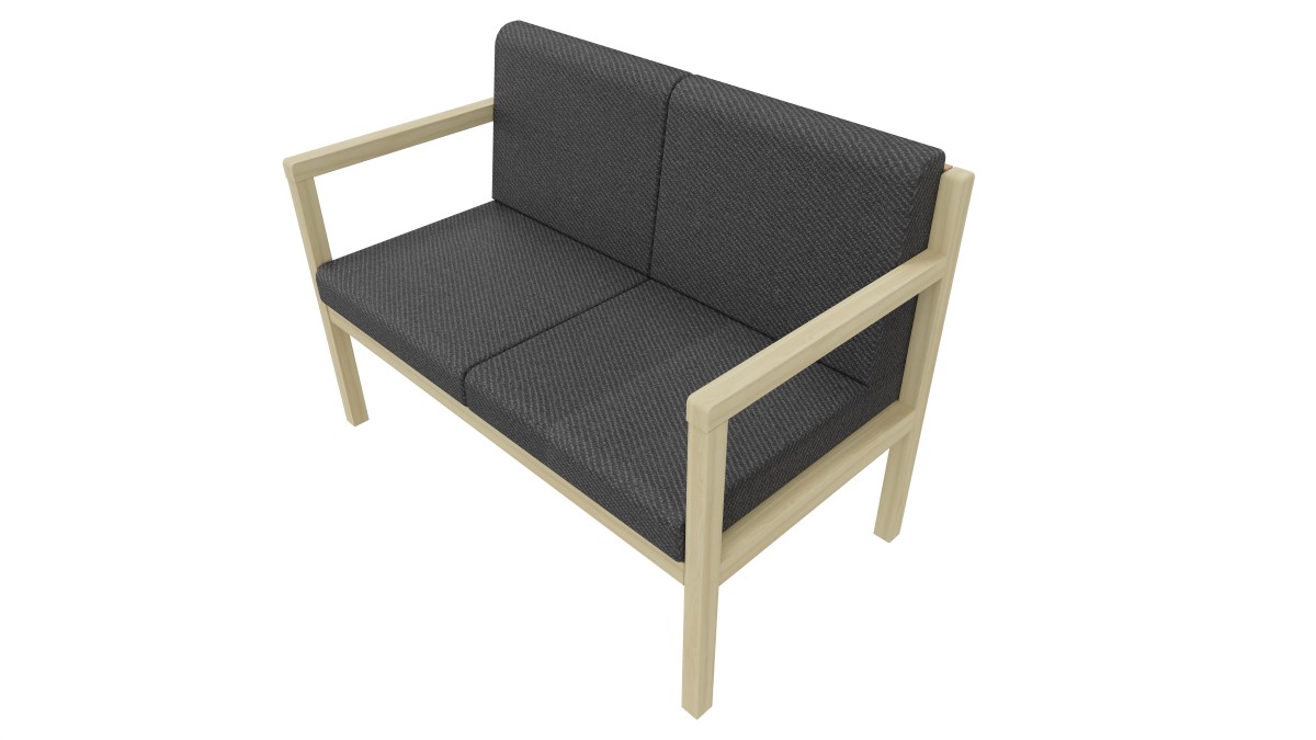 Dimensions hors tout : H 845 x P 635 x L 1168 mm. Hauteur d’assise : 435 mm.