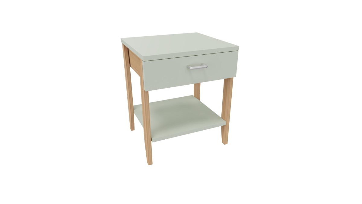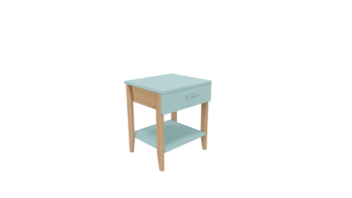Structure réalisée en hêtre massif. Les arêtes du produits sont cassées par un arrondi. Remplissage en panneau mélaminé d'épaisseur 19 mm. Tiroir en panneau mélaminé.